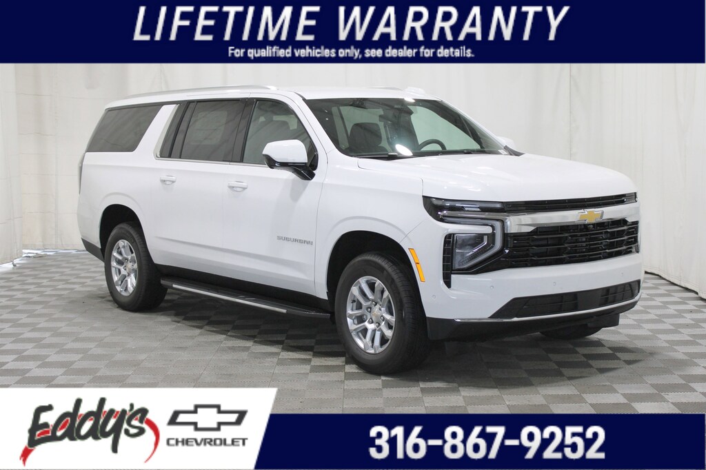 Priced below KBB Fair Purchase Price! Summit White 2025 Chevrolet Suburban LS EcoTec3 5.3L V8 4WD 4D Sport Utility