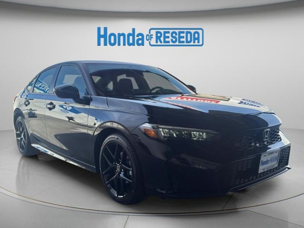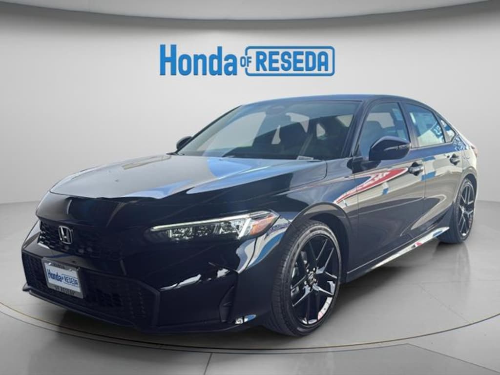 Crystal Black Pearl 2026 Honda Civic Sport FWD CVT 2.0L I4 DOHC 16V Blk Clth/Lthette Artificial Leather.