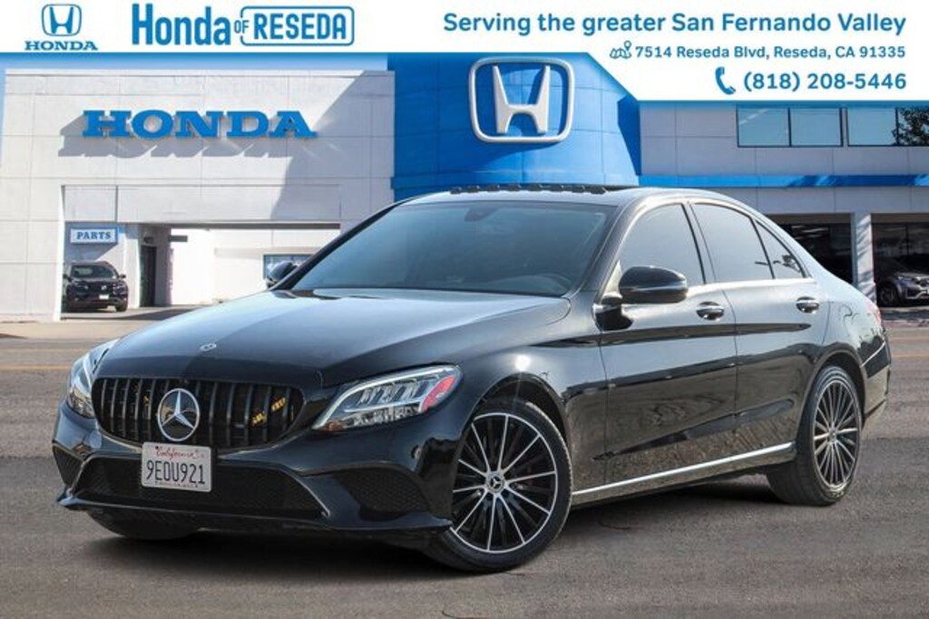 This 2020 Black Mercedes-Benz C 300 RWD is well equipped and includes these features and benefits: 10.25" High-Resolution Center Display, 4-way Power Driver's Lumbar Support, 4-Wheel Disc Brakes, 5 Speakers, ABS brakes, Air Conditioning, Alloy wheels, AM/FM radio, Android Auto®, Anti-whiplash front head restraints, Apple CarPlay®, Apple CarPlay®/Android Auto®, Auto tilt-away steering wheel, Auto-dimming door mirrors, Auto-dimming Rear-View mirror, Automatic temperature control, Brake assist, Bumpers: body-color, Child-Seat-Sensing Airbag, Compass, Delay-off headlights, Driver door bin, Driver vanity mirror, Dual front impact airbags, Dual front side impact airbags, Electronic Stability Control, Emergency communication system: Mercedes me connect, Exterior Parking Camera Rear, Four wheel independent suspension, Front anti-roll bar, Front Bucket Seats, Front Center Armrest, Front dual zone A/C, Front reading lights, Fully automatic headlights, Garage door transmitter: Homelink, Genuine wood console insert, Genuine wood dashboard insert, Genuine wood door panel insert, HD Radio, Head restraints memory, Heated door mirrors, Illuminated entry, Knee airbag, Low tire pressure warning, MB-Tex Upholstery, Memory seat, Occupant sensing airbag, Outside temperature display, Overhead airbag, Overhead console, Panic alarm, Passenger door bin, Passenger vanity mirror, Power adjustable front head restraints, Power door mirrors, Power driver seat, Power Front Seats w/Driver Memory, Power moonroof, Power passenger seat, Power steering, Power windows, Radio data system, Radio: Audio 20, Rain sensing wipers, Rear anti-roll bar, Rear fog lights, Rear reading lights, Rear seat center armrest, Rear side impact airbag, Rear window defroster, Remote keyless entry, Security system, Smartphone Integration, Speed control, Speed-sensing steering, Split folding rear seat, Steering wheel memory, Steering wheel mounted audio controls, Tachometer, Telescoping steering wheel, Tilt steering wheel, Traction control, Trip computer, Turn signal indicator mirrors, Variably intermittent wipers, Weather band radio, and Wheels: 18" Twin 5-Spoke. Recent Arrival! New Price!