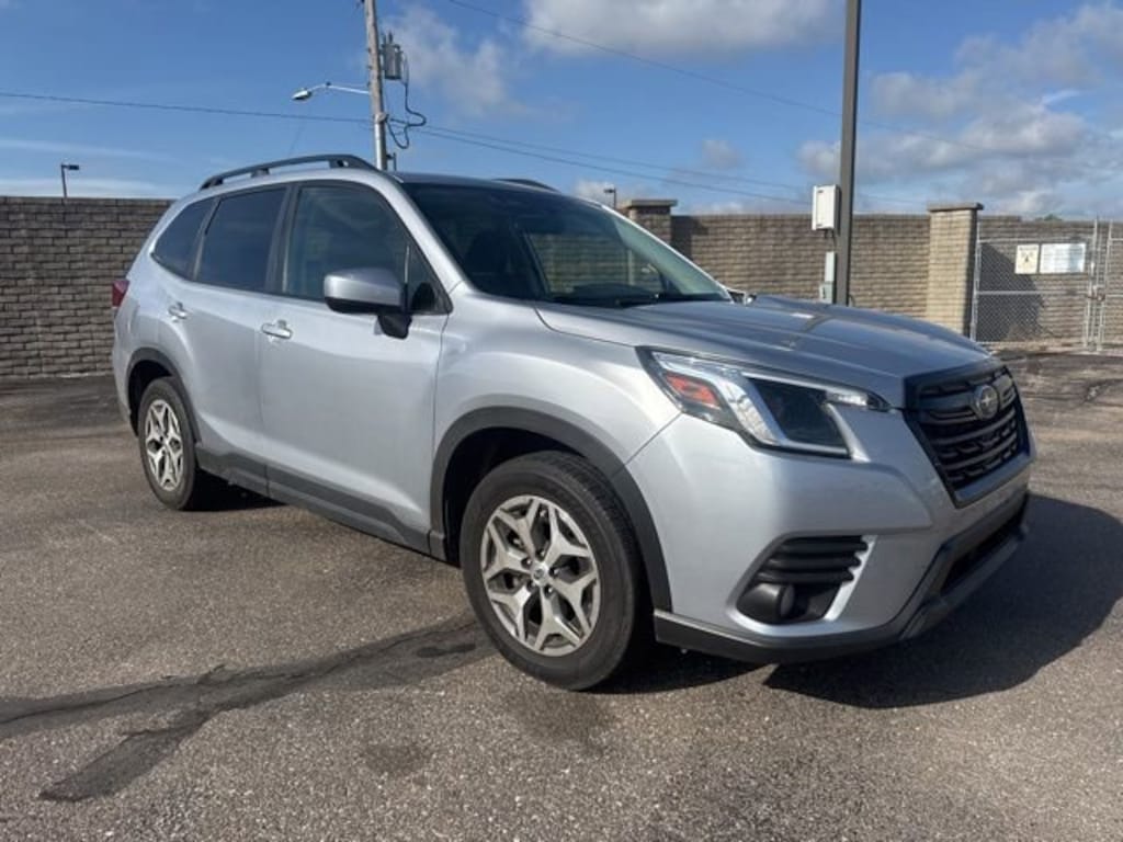 26/33 City/Highway MPG Ice Silver Metallic 2022 Subaru Forester 4D Sport Utility Premium AWD Lineartronic CVT 2.5L 4-Cylinder DOHC 16V