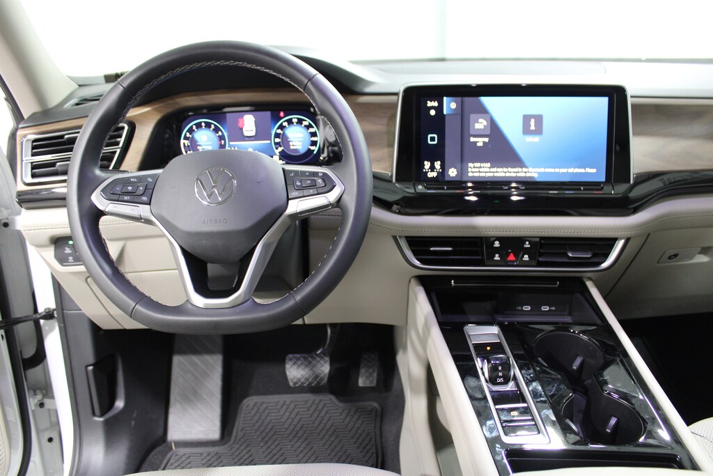 The Atlas has an infotainment system that is easy to use and intuitive, and it allows for swiping and pinch zooming. Apple Car Play is awesome! Surprisingly, some manufacturers have not integrated this feature at this time. The digital instrument panel has a very nice, modern look, and it offers 5 or 6 different views. One of the really cool things about the Atlas- you can display the nav map in the middle of the instrument panel. Additionally, you can make the map bigger and the gauges smaller, which allows you to see more map detail- a really nice option. The car even has an altimeter, which is really cool to me (I’m a pilot by trade). Not so much for my wife…